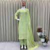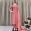 Women’s Faux Georgette Embroidery work Straight Kurti With Pant and Dupatta Set
