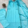 Women’s Chinon Silk with Cotton Thread Embroidery Straight Kurti With Pant and Dupatta set