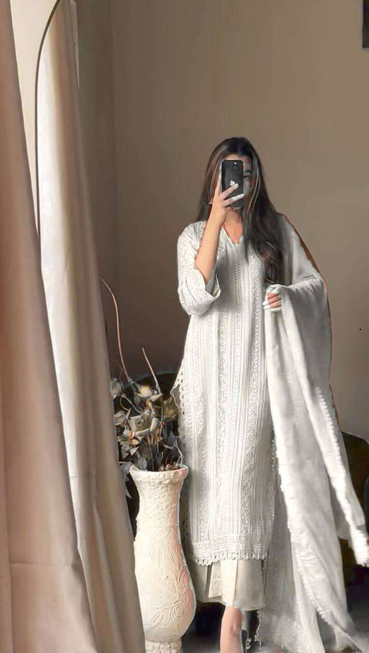 Women’s Faux Georgette Embroidery work Straight Kurti With Pant and Dupatta Set