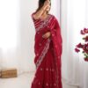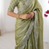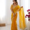 Drape yourself in elegance with this stunning Jimmy Chu saree, featuring intricate thread and sequence work. The saree measures 5.5 meters and is available in 5 captivating colors, weighing a comfortable 0.850 grams. The ensemble includes an unstitched Jimmy Chu blouse with inner lining, also adorned with matching thread and sequence work on both front and back, sized at 0.80 CM. This exquisite set is priced at ₹4,899.00.