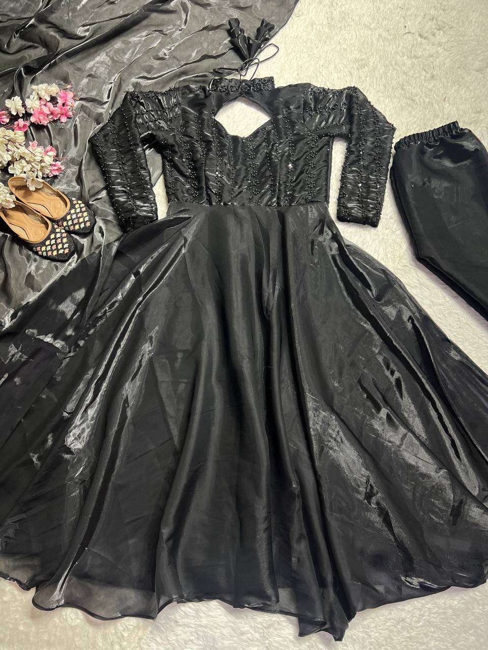 Women’s American Silk Sequence Embroidery Long Anarkali Kurti (Gown) With Dupatta